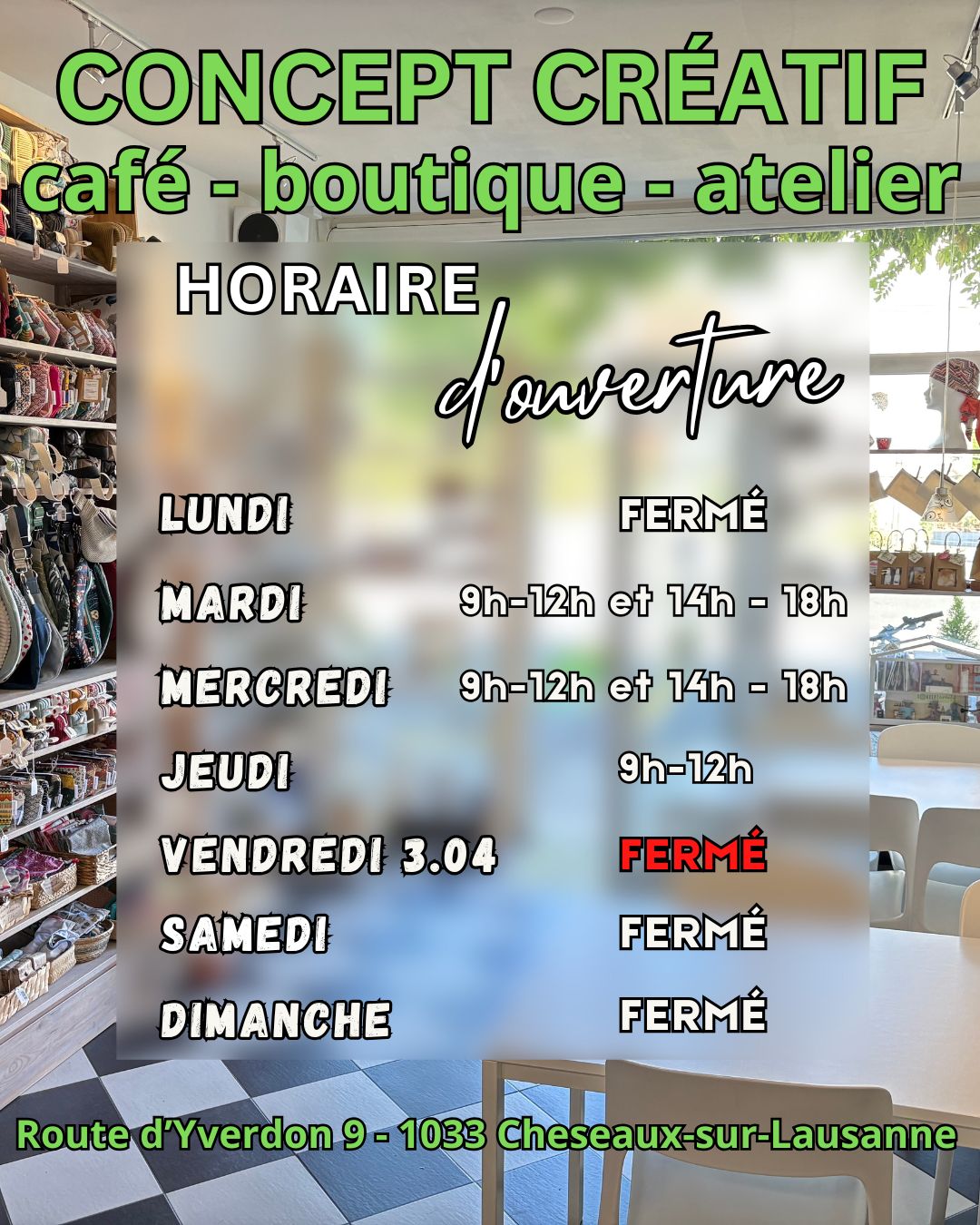 Avant à Etagnières, la boutique a été ouverte du 21.12.2020 au 30.06.2023 avant de déménager à Cheseaux !
